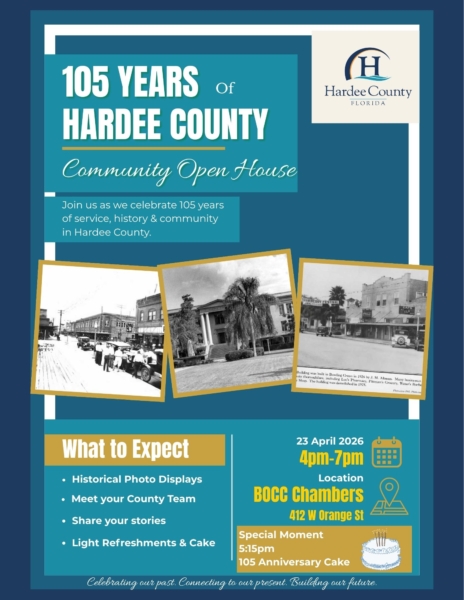 Join us as we celebrate 105 years of service, history, & community in Hardee County.